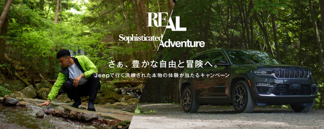 Stellantisジャパン株式会社(本社:東京都港区、代表取締役社長:打越 晋)は、同社が展開するジープによる洗練された本物の体験が当たるプレゼントキャンペーン「Real Sophisticated Adventure」(リアル ソフィスティケイテッド アドベンチャー)を開催します。キャンペーン応募期間は本年7月21日(金)から9月10日(日)まで、キャンペーン専用サイトより受付いたします。