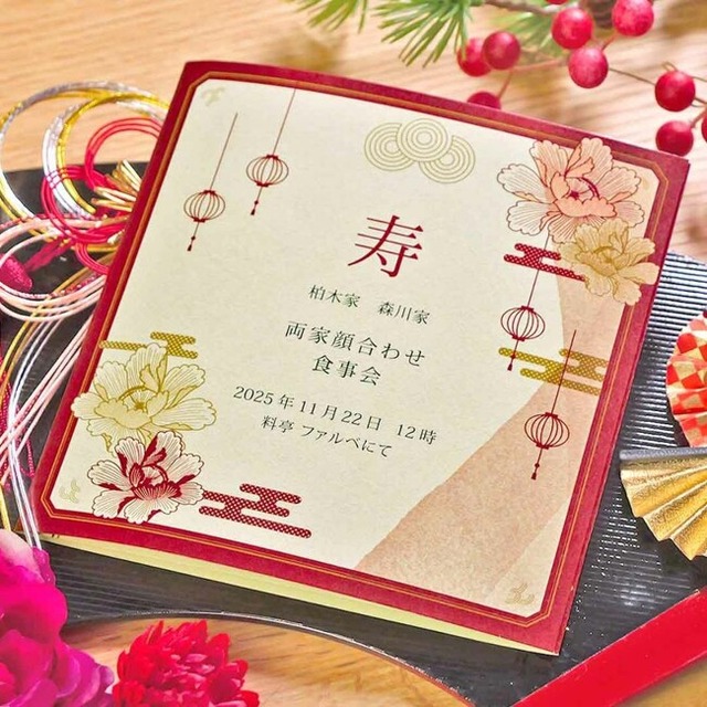 最近は、結納よりカジュアルな雰囲気の顔合わせ会が主流ではありますが、ホストである新郎新婦からのおもてなしのひとつとして「顔合わせしおり」を形に残すことで、心のこもった贈り物のひとつにして欲しいと思っています。