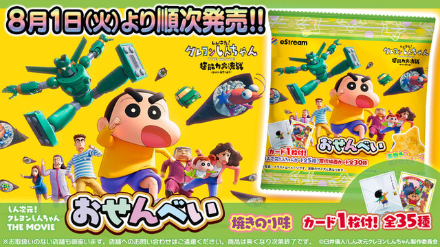 株式会社CyberZ(本社:東京都渋谷区、代表取締役社長:山内隆裕)の連結子会社、株式会社eStream(本社:東京都渋谷区、代表取締役社長:高井里菜)は、劇場版クレヨンしんちゃん最新作『しん次元!クレヨンしんちゃんTHE MOVIE 超能力大決戦 ~とべとべ手巻き寿司~』の公開を記念して、『しん次元!クレヨンしんちゃんTHE MOVIE カード付きおせんべい 焼きのり味』の発売を決定いたしました。2023年8月1日(火)より、全国のローソン、eStream Store等で販売を開始いたします。