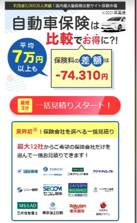 ※自動車保険を複数社一括見積りできるサイトのうち、「お客様の見積り希望の保険会社を選択できる自動車一括見積りシステム」として。