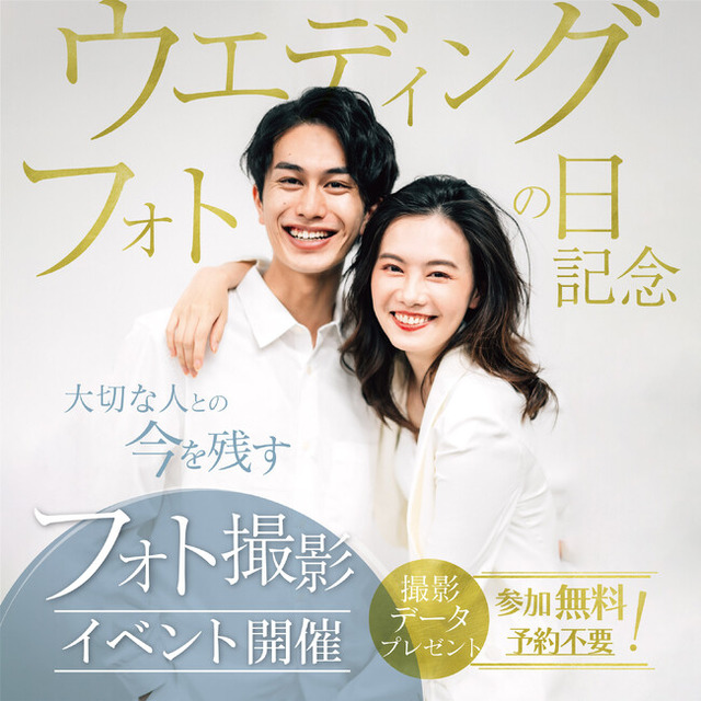 事前予約等は一切不要。店舗に直接ご来店いただくだけで、さまざまな受賞歴や実績を持つ経験豊富なフォトグラファーが、お客様の素敵な瞬間を写真に収めます。撮影したデータはその場でプレゼントいたします。ぜひこの機会にパートナーやご家族、ご友人と共に、撮影をお楽しみください。 ※店舗によって、イベント実施日が異なります。