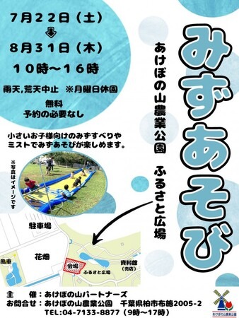 ※月曜日は休園日のため「みずあそび」もお休みとなります。