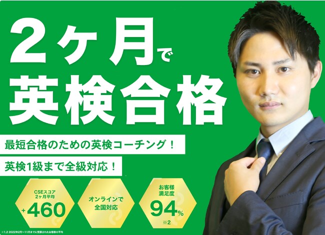 英検対策のコーチング塾「英検コーチ」では、高校生向けに英検2級、英検準一級、英検1級の対策指導を行っております。コンサルタントには、東大、早慶をはじめとする難関大学に合格した英検保持者が在籍しています。自身も英検の合格経験を持つコンサルタントが、生徒が英検に最短で合格できるよう、パーソナライズされた勉強計画の作成と365日毎日学習サポート、質問対応、モチベーション管理、確認テストを行います。従来の塾、予備校のように一方的に「授業をする」のではなく、志望校に最短で合格するための効率的な勉強法、勉強計画の提案、フィードバックを行うコーチングを行なっております。毎日の徹底進捗管理や面談を通して、無駄のない英検対策勉強を実現することでたった2ヶ月で英検に合格できる、それが英検コーチの強みです。