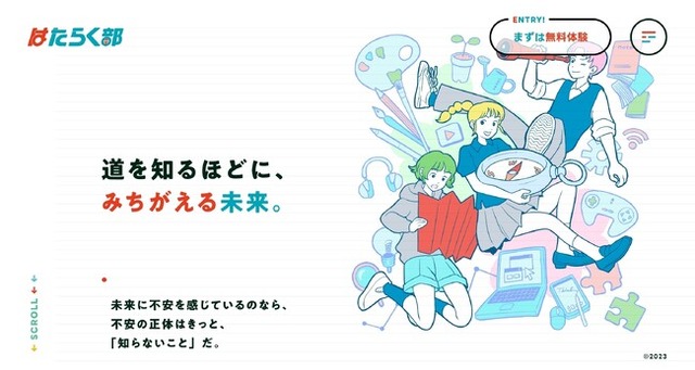 今回の公式サイトのリニューアルでは、多種多様なテーマについて、みんなでワイワイとゲーム感覚で楽しみながら、将来について考えを深める体験ができる「はたらく部」の世界観を表現しました。