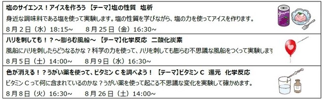 ヒューマンアカデミージュニアSTE“AMスクールが運営する科学教室「サイエンスゲーツ」では、夏休みに科学の魅力を伝えられるよう、全国の年長~小学校低学年の子どもたちを対象とする特別講座を開講します。毎年、春休みや夏休み期間中に実施した講座の中から、リピーター続出となった3講座を揃え、「塩の性質」や「化学反応」、「酸化と還元」など、科学のテーマを楽しく学びます。