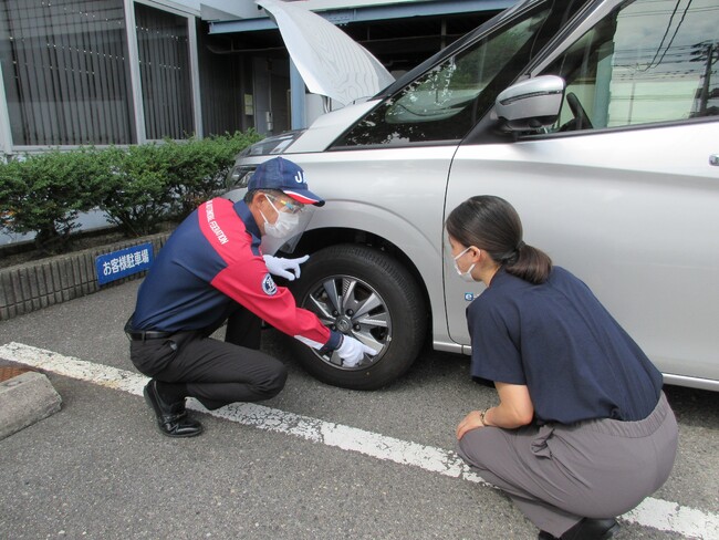 この教室は、夏の長距離ドライブ前に自動車ユーザーの安全な走行を促すことを目的としており、マイカーの点検方法を知りたい、日常点検に不安を感じるドライバーに向けて、初心者にもできる点検方法をマンツーマンでお伝えします。エンジンルームの中やタイヤの点検方法などわかりやすくアドバイスし、お客様のクルマに応じた質問等もお答えします。夏のお出かけ前にJAFインストラクターと一緒にマイカーを点検し、夏休みやお盆の移動を楽しめるように備えましょう。