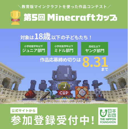 小学生から高校生以下の子ども達を対象に、世界中で親しまれているMinecraftの中でも、教育現場で多く使われている「Minecraft Education(教育版マインクラフト)」を使った作品コンテストです。