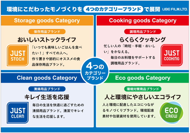 宇部フィルムでは、人と環境にやさしい無添加の食品保存用ラップ「ポリラップ」のブランドを創り上げてきました。このブランド創造力をさらに活かして新たな4ブランドを立ち上げます。