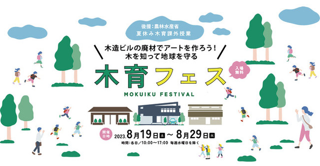 この度、次世代を担う子どもたちに日本の最新木造技術と世界が注目する「木のビル」を体感し、木と触れ合い、木を知る機会を設けるため、「夏休みの木育課外授業 つくろう!木育フェス」(農林水産省後援)を開催いたします。