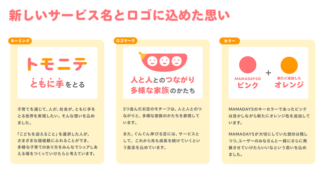 これまで、ファミリー向け動画メディア『MAMADAYS』としてパートナーや家族とともに子育てをする世界にむけて情報発信や機能を提供してきましたが、さらに育児のシェアを加速させることや多様化する家族のあり方を応援できるサービス、ミッションにすべく、リニューアルすることにいたしました。