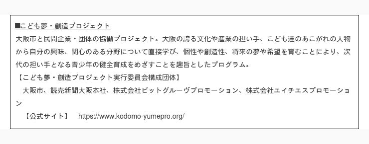 詳細はこちら ⇒ https://www.kodomo-yumepro.org/2023/pro03.html