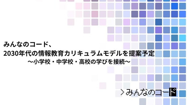 2024年3月に、みんなのコードは、小学校・中学校・高校の学びを接続させていくために、2030年代の情報教育カリキュラムモデルを提案します。本実証研究の実施にあたっては、子ども・若者の未来を支援する公益財団法人日本財団(東京都港区、会長:笹川 陽平)に、「公教育における情報教育の発展と共創による地域格差の是正」プロジェクトとして助成いただいています。