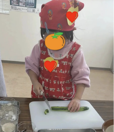 ですが、グリーンコープの子ども料理教室では最初に作り方を教えたあとは、おとなは基本的に手を出しません。スタッフは子どもたちが包丁などの取り扱いを誤らないようにサポートしますが、事細かに教えることはしません。親も指定の少し離れた場所から、子どもたちの料理の様子を見守っています。料理を通して、子どもの自主性を育みたいと考えているからです。