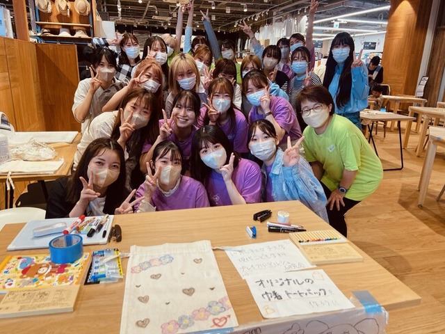 今回のワークショップを終えて、より家族の触れ合いを多く見ることができたと感じています。これまで主に活動してきた「LOVE京田辺マルシェinブランチ松井山手」でのワークショップでは、こども達と私たちとが主に制作をして、保護者の方は側で見守っていることが多いですが、今回は親子で「ここに何を描こうかな?」「これ何?」など、会話がたくさん見られました。なかでも印象的だったことは、お子さんが絵を描いたバッグを保護者の方にプレゼントしていたことです。一生懸命描いた絵をもらった時の保護者の方の笑顔と、お子さんの嬉しそうな顔がとても印象的で、心があたたまりました。また、親子で会話しながら絵を描いたり、きょうだいで参加されていたりした人もいて、このワークショップを通してたくさんの笑顔を見ることができて嬉しかったです。