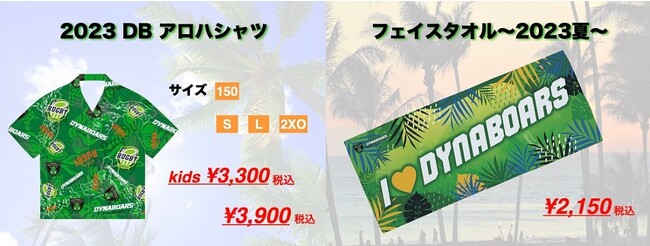 (2)ダイナボアーズのグッズが購入できる特設グッズ売り場を開設。大好評のアロハシャツに加えフェイスタオル~2023夏~をフェスタ限定で販売!