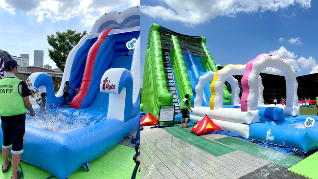 ぽよぽよ楽しいバルーン遊具&じゃぶ~んと爽快な2台のスライダー!