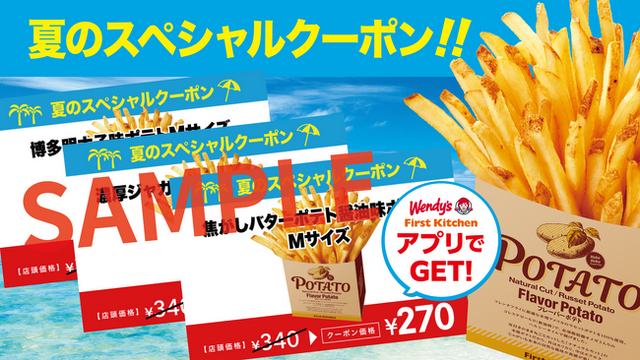 期間中、当店の大人気商品『フレーバーポテト』の中から、「博多明太子味ポテト」「焦がしバター醬油味ポテト」「濃厚じゃがバタ味ポテト」を週替わりで配信します。通常価格340円(税込)のところ、特別価格270円でポテトMサイズをご提供します。アプリ会員のお客様はもちろん、この機会にぜひアプリをダウンロードして、人気商品をお得にお楽しみください。
