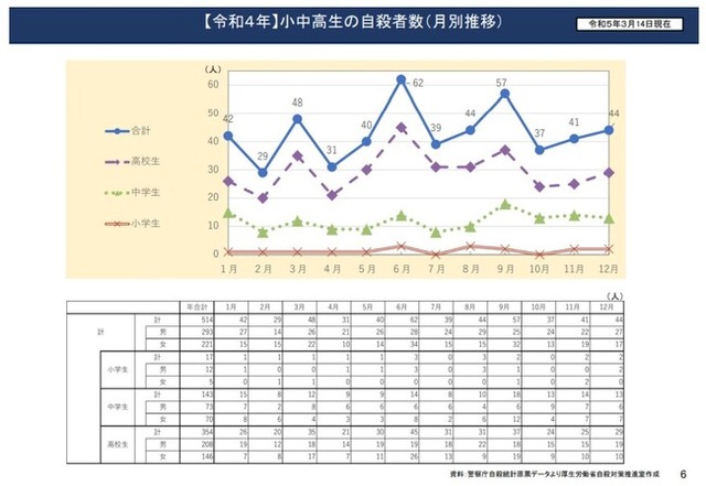 そして長らく、子どもの自殺が1年で一番多い日は9月1日と言われてきました。近年それは変化しており、2022年は6月が最多の62人でした。しかし9月も変わらず多く2番目の57人となっています。