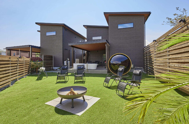 お庭にはバレルサウナ、水風呂、ジャグジーを設置しておりリラックスした時間をお過ごしいただけます。また屋外キッチンとBBQ用コンロも設置しておりますのでBBQをしながらお食事を楽しんでいただくこともできます。