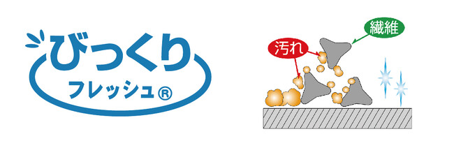 何本ものエステル繊維のより合わせで、適度な剛性・弾性を実現しています。また、繊維のもつ特殊断面形状の側面エッジングがすみずみの汚れまでかき出すため、水だけでも汚れを落とすことができます。