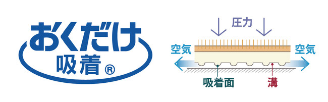 独自の特殊素材には、目には見えない気孔(気泡)が無数に開いています。上から力が加わると、空気が抜け真空状態になり、吸着面が吸盤のようになる仕組みのため、床にピタッと吸着します。