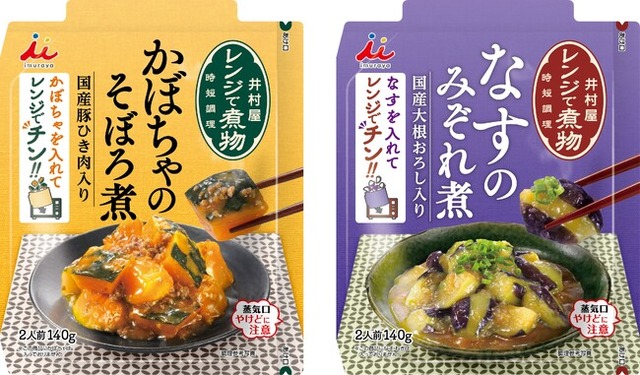 井村屋株式会社(本社:三重県津市高茶屋七丁目1番1号、社長:岩本 康)は、電子レンジで簡単に副菜ができるパウチ入りの調味料『レンジで煮物 かぼちゃのそぼろ煮』、『レンジで煮物 なすのみぞれ煮』を2023年8月21日(月)より全国にて順次発売します。