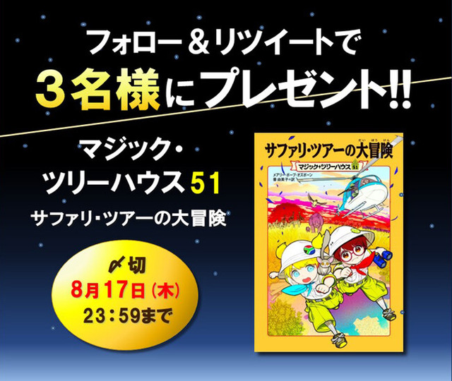 株式会社KADOKAWAは、来る9月20日、世界で1億5000万部発行の大人気児童書シリーズ「マジック・ツリーハウス」の最新刊、『マジック・ツリーハウス51 サファリ・ツアーの大冒険』を発売します。
