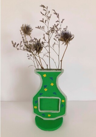 段ボールと新聞紙を再利用してフラワーベースやフォトフレームを作ります。