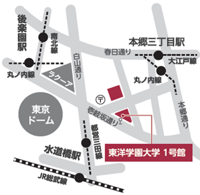 東洋学園大学 (東京都文京区本郷1-26-3) ※駐車場、駐輪場はありません。