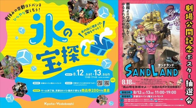 京都駅前にある、ヨドバシカメラとファッション、雑貨、飲食店などの専門店が一体となった「京都ヨドバシ」は、2023年8月12日(土)・13日(日)の2日間にわたり、映画『SAND LAND(サンドランド)』劇場公開記念ポスター抽選会、お子様向けアトラクション「氷の宝探し」を開催いたします。