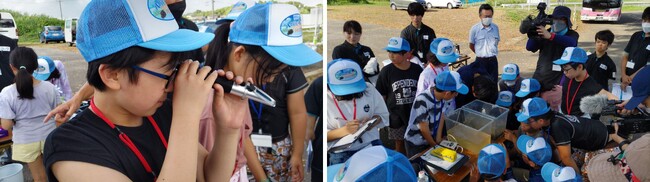 様々な実験道具を使いながらの調査では、「色が少し変わった」や「塩分濃度3%」と大きな声で確認し合う姿が見られました。調査の結果、汽水域の水質はヤマトシジミの生息に適していることが確認できました。また、夕食時にはシジミの味噌汁を味わいシジミの美味しさを認識しました。