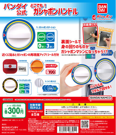 売に対応できるようになった「BVM2002」のハンドル部分、2020年から展開が始まったカプセルサイズと価格設定に柔軟性を持たせた最新型の「ガシャポンステーション」のハンドル部分と、「ガシャポン(R)」自販機の歴史もお楽しみいただける全5種で展開します。