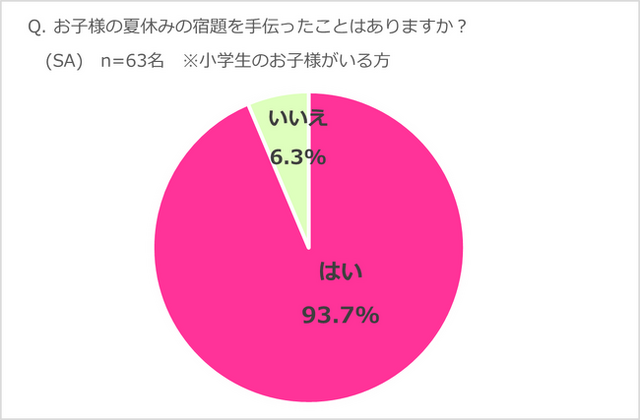 現在小学生の子どもを持つ親の9割以上が夏休みの宿題を手伝ったことがあると回答!