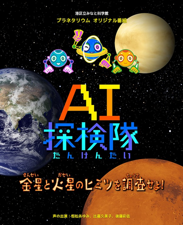 港区立みなと科学館(所在地:東京都港区虎ノ門 館長:布施直人 以下、みなと科学館)では、2023年7月16日(日)から、みなと科学館オリジナルプラネタリウム番組であるAI探検隊の第2弾として「AI探検隊 金星と火星のヒミツを調査せよ!」を投影しています。