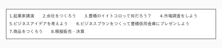 2日間・8時間のプログラムでは、豊橋をPRできる「地球に優しい」グッズを考え、ビジネスプランにまとめて、豊橋信用金庫の現役職員にプレゼンテーションします。もっといいプランにするにはどうすれば良いか、ヒントをもらいながら、最後は模擬通貨を使って、販売、決算までチャレンジ。一連のプログラムを通して会社作りの流れを体験し、チームワークやお金の大切さを学びます。