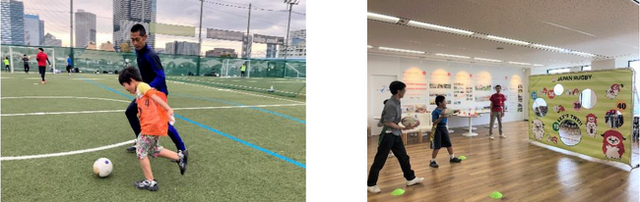 ▲(左)ひとり親家庭向け 親子サッカー教室