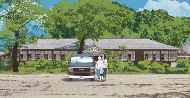 会場は、明治12(1879)年に創立された「旧上岡小学校」。茨城県内の小学校校舎としては旧水海道小学校玄関に次いで二番目に古く、現地保存されているものでは県内最古の校舎であり、木造平屋造りの校舎の佇まいや、木のサッシにはめられた古い窓ガラスの趣き、落書きや削り跡が残る木の机や椅子など、そのノスタルジックな佇まいから数々のドラマや映画のロケ地になっています。