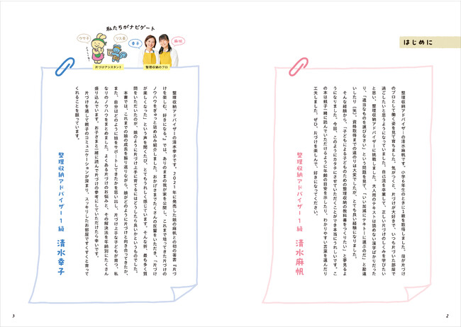 整理収納アドバイザー1級の資格を史上最年少で取得した娘・清水麻帆と、同じ資格をもって活躍中の母・清水幸子。これまでの日々の生活の中で、二人が話し合い、学び得てきた整理収納のアイデアから、親子のコミュニケーションノウハウまでがたっぷり詰まった、今までにない片づけの教科書です。