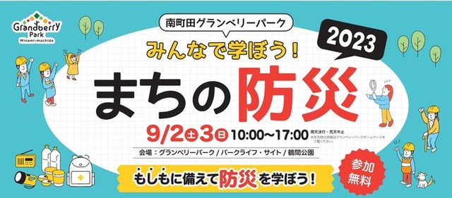 アウトレット複合商業施設「グランベリーパーク」を運営する株式会社東急モールズデベロップメント、パークライフ・サイトの運営管理を行う株式会社ミュージアム・スタッフ、鶴間公園の運営管理を行うTSURUMAパークライフパートナーズの3者は、2023年9月2日(土)、3日(日)の2日間、今年で3回目となる防災イベント「南町田グランベリーパーク みんなで学ぼう!まちの防災 2023」を開催します。