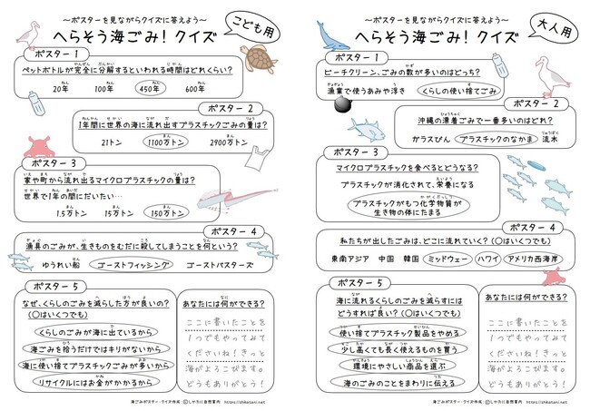 ・子どもから大人まで楽しめる「海ごみ問題」に関連したクイズをご用意