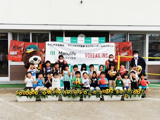 ヴォレアス北海道の所属選手と、マニュライフ生命の社員が北海道内の幼稚園、保育園を回り、ミニバレーボールとミニバレーボールネットを寄付し、バレーボールの普及と運動の楽しさを伝える活動を行います。