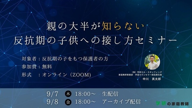 「【全保護者必見!】親の大半が知らない思春期の子供への接し方セミナー」を9月7日(木)、9月8日(金)に開催します!