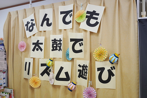 普段身の回りにある物を「太鼓」して、叩いてリズム遊びをする内容で、昨年12月に引き続き2回目の開催です。