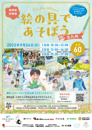2023 年 9 月 24 日(日)に福岡県北九州市のリバーウォーク北九州にて、福岡県初開催のアートイベント「絵の具であそぼう in 北九州」を開催いたします!