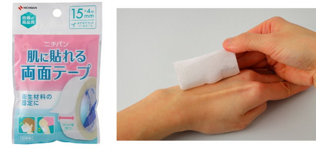 本製品は、そんなお客様の声から生まれた、不織布マスクやガーゼなどの衛生材料を肌に固定する両面テープです。肌にやさしい医療用粘着剤を使用し、しっかり固定することができます。衛生材料の肌にあたる面に貼るので、顔や腕などでも、テープが目立たず使用いただけます。