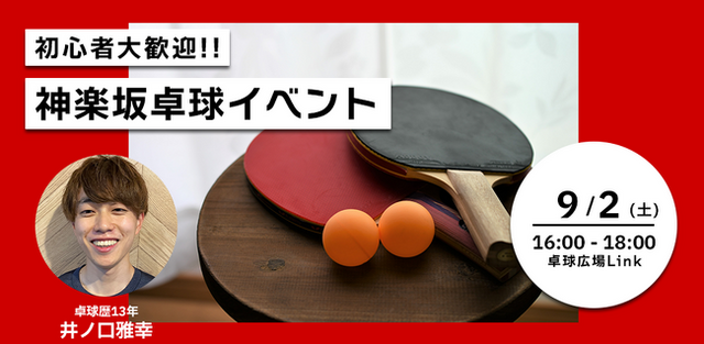 株式会社co-nectでは神楽坂周辺にお住まいの方に気軽に運動習慣を作っていただきたい想いから、神楽坂卓球イベントを開催します。