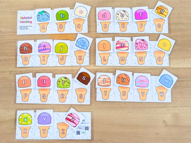 ダウンロードページ:https://www.alpaca-english.com/icecream-alphabet-matching