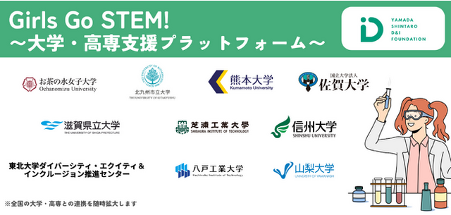 「Girls Go STEM!~大学・高専支援プラットフォーム~」の立ち上げを心より歓迎いたします。山梨大学男女共同参画推進室では、女子学生の理系進路選択を応援し、このプラットフォームに参加することで、多様な人材がSTEM(理系)分野で活躍できる環境を目指してまいります。