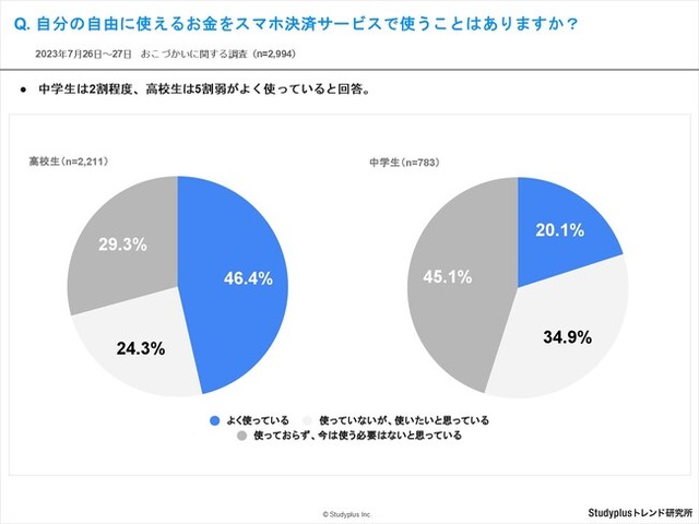 スタディプラス株式会社(本社:東京都千代田区、代表取締役:廣瀬高志、以下スタディプラス)のStudyplusトレンド研究所は、2023年7月26日(水)から7月27日(木)にかけて学習管理アプリ「Studyplus」上で全国の中学1年生から高校3年生を対象に、「おこづかいに関する調査」を実施、2,994名から回答を得ましたのでご報告いたします。
