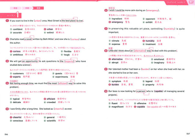 そこで本書は、部分訳やポイントと、問題文が一緒に見える「板書風書き込み式解説」を採用。解説文が短くなり、英文と訳の対応もつかみやすくなります。